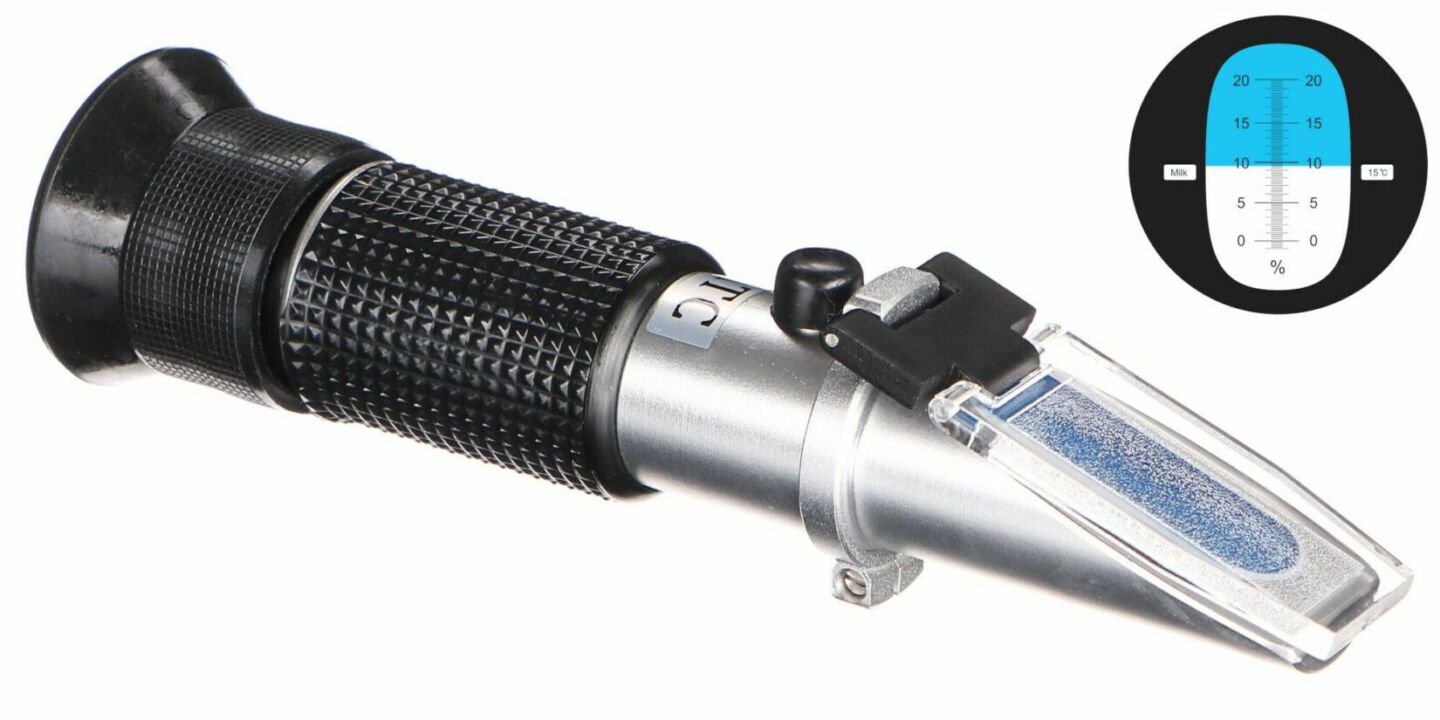 Kvalitní optický přístroj / refraktometr na mléko s automatickou teplotní kompenzací je určený pro snadné, rychlé a přesné měření obsahu vody v mléku v rozsahu 0 % – 20 % s rozlišením 0,2 %. Refraktometr je přístroj pro měření indexu lomu paprsku světla a takto lze určovat složení kapalných směsí či čistoty látek. Tento refraktometr se používá všude tam, kde je třeba zjišťovat kvalitu mléka, respektive obsah vody v mléku. ATC / systém automatické teplotní kompenzace (při teplotě 0°C až 30°C není nutná žádná kalibrace).Hlavní výhody: