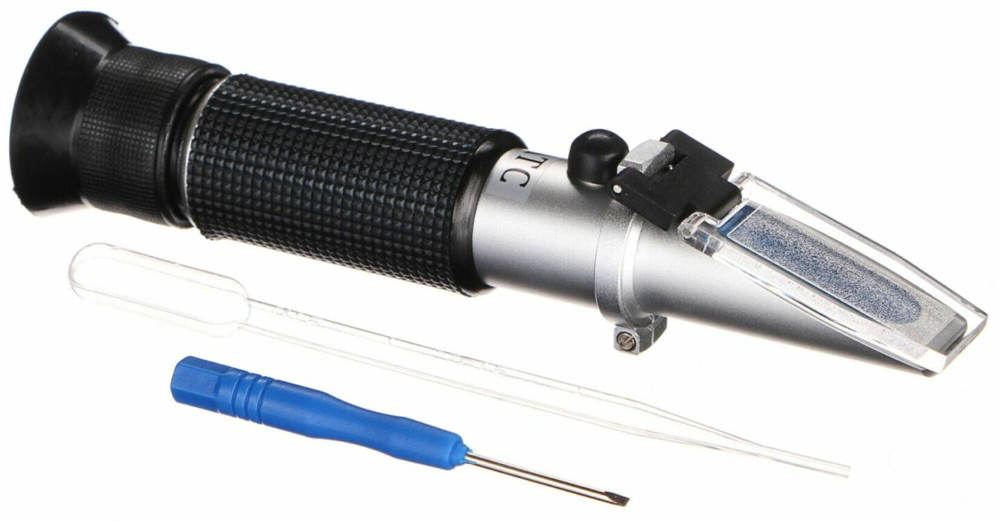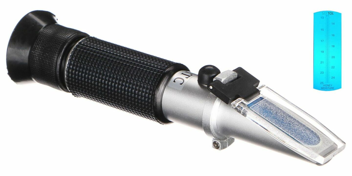 Kvalitní optický přístroj / refraktometr na med s automatickou teplotní kompenzací je určený pro snadné, rychlé a přesné měření obsahu vody v medu v rozsahu 13 % – 25 % s rozlišením 0,1 %. Refraktometr je přístroj pro měření indexu lomu paprsku světla a takto lze určovat složení kapalných směsí či čistoty látek. Tento refraktometr se používá všude tam, kde je třeba zjišťovat kvalitu medu, respektive obsah vody v medu, např. podle Směrnice Rady 2001/110/ES, Směrnice Evropského parlamentu a Rady 2014/63/EU, vyhlášky č. 76/2003 Sb., vyhlášky č. 148/2015 Sb., Svazové normy jakosti č. ČSV 1/1999 pro získání značky ČESKÝ MED apod. Referenční teplota 20°C, refraktometr i med by měly mít při měření pro co nejvyšší přesnost teplotu přibližně 20°C. ATC / systém automatické teplotní kompenzace (při teplotě 0°C až 30°C není nutná žádná kalibrace).Hlavní výhody: