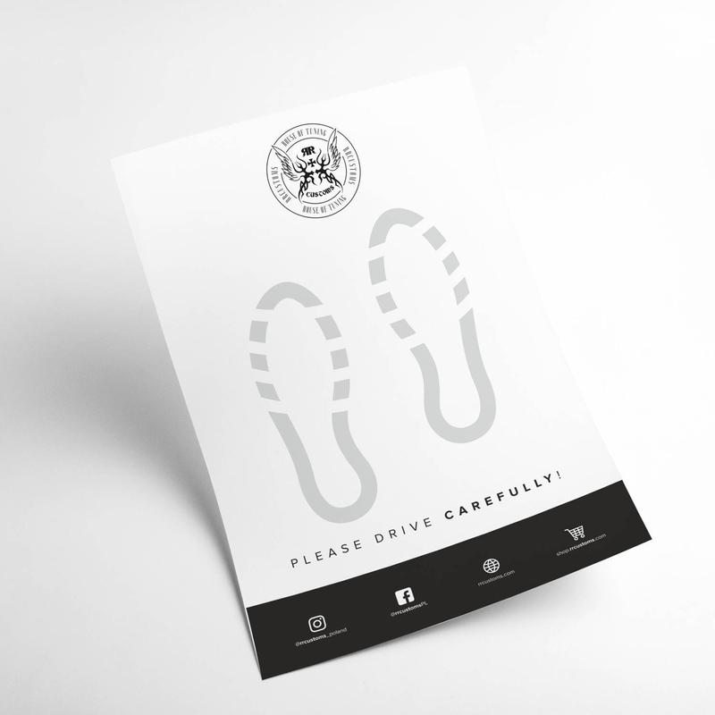 Papírové koberečky do auta s velkým logem RRC a adresami spojenými se značkou. Ideální pro každý předváděcí nebo právě vyčištěný vůz. Uplatní se také v autosalonech, autodílnách, lakovnách a na dalších místech, kde chceme udržet podlahu vozu čistou.