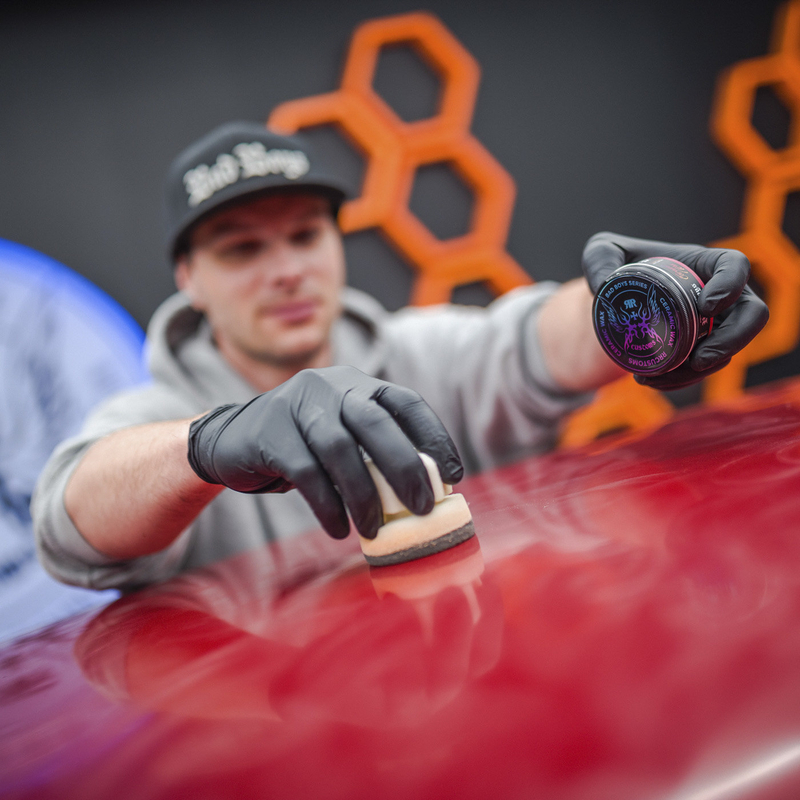 Pro dosažení nejlepších výsledků aplikujte vosk na chladném, stinném místě a pracujte postupně panel po panelu. Lak dokonale umyjte, dekontaminujte (odstranění asfaltu, polétavé rzi atd.). Před nanesením vosku použijte čistič laku Bad Boys Pre-Wax Cleaner.