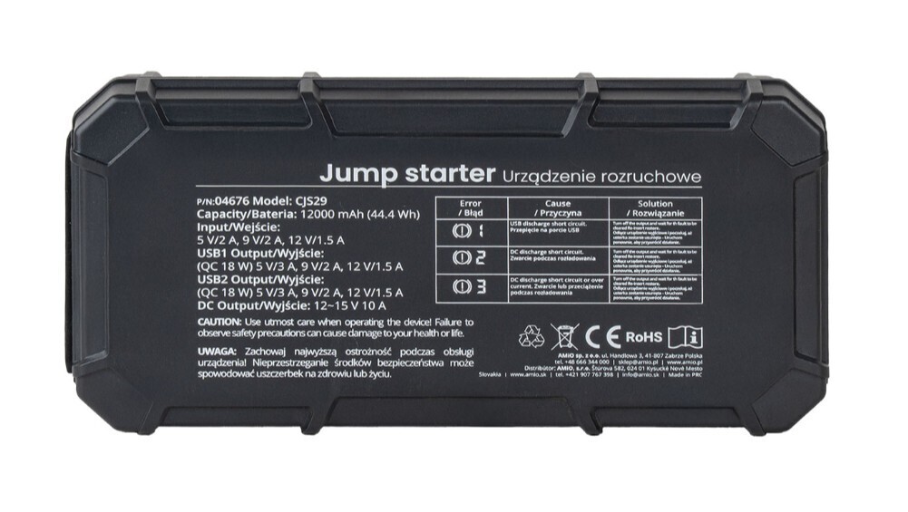 • Vysoký startovací výkon umožňuje nastartování osobních aut, dodávek a motocyklů