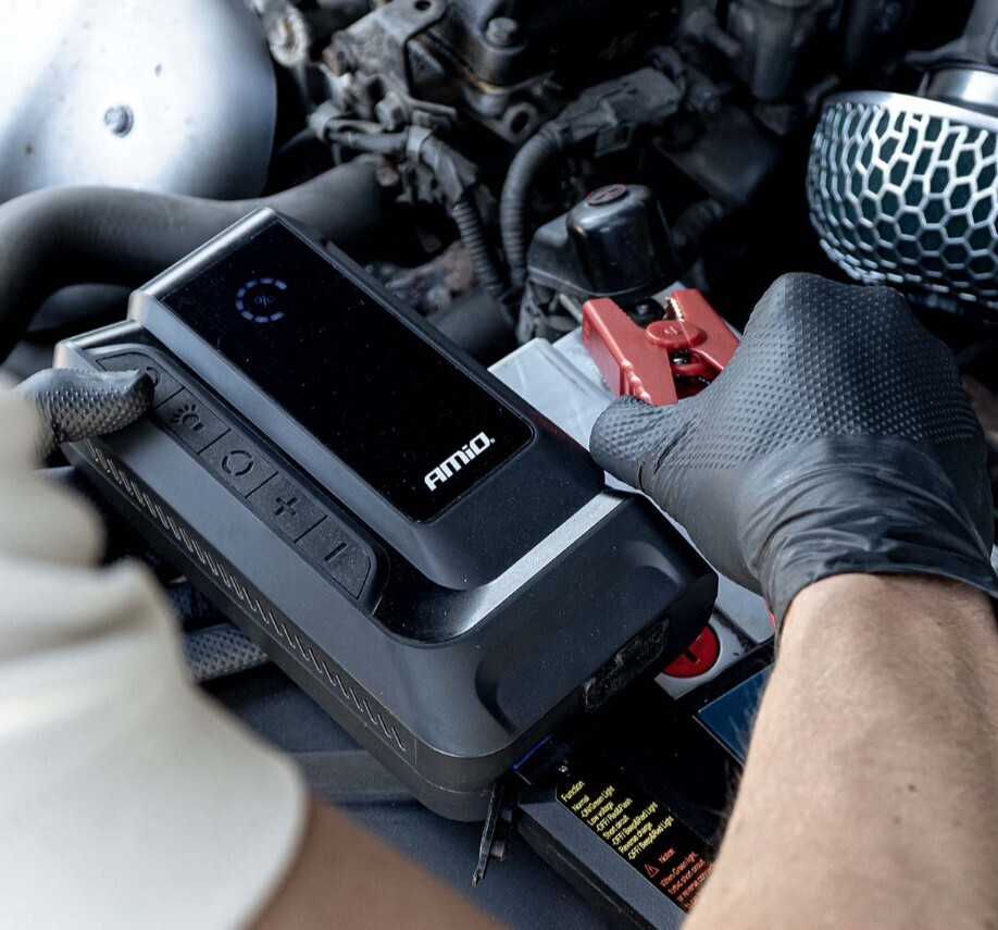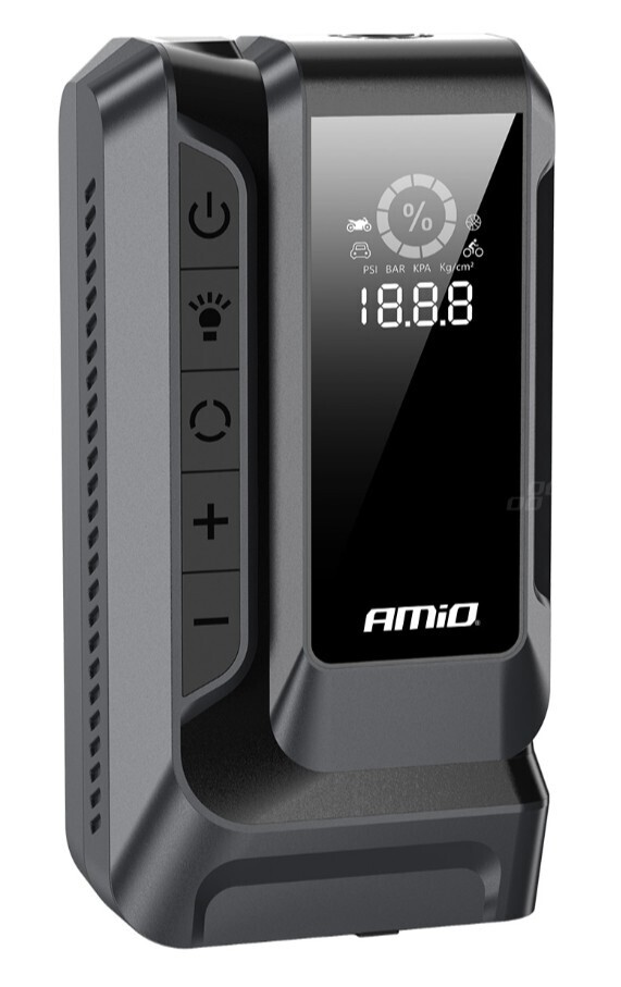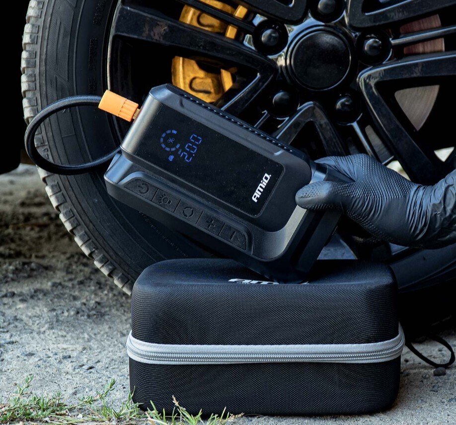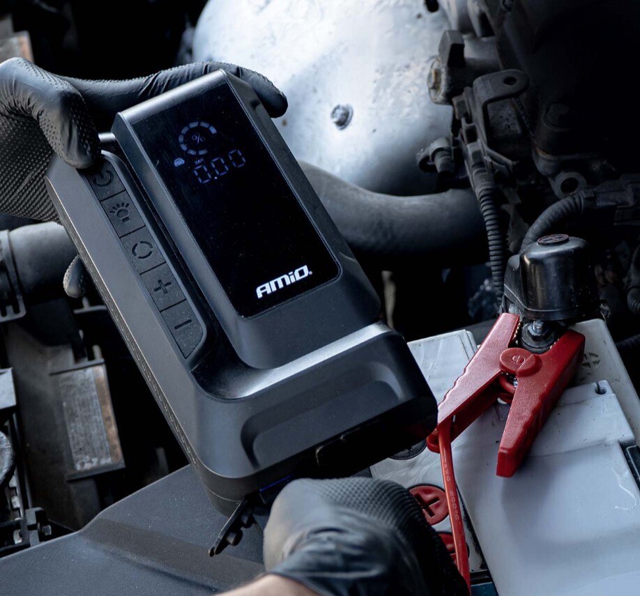 Startovací zařízení AMiO 4v1 12Ah je profesionální a multifunkční zařízení, které kombinuje funkce startovacího boosteru, powerbanky, vzduchového kompresoru a LED baterky.