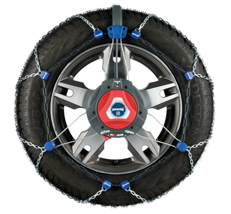 Inovativní sněhový řetěz s řetězovou sítí z článků starwave® a s pevným kruhem. Vyvinut speciálně i pro automobily se zadním náhonem
