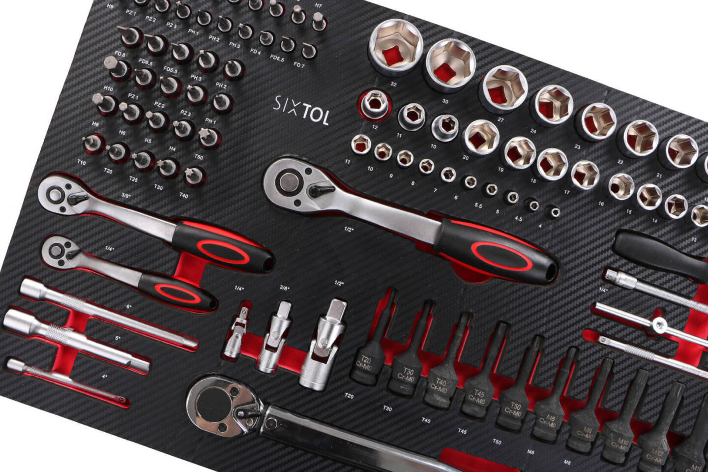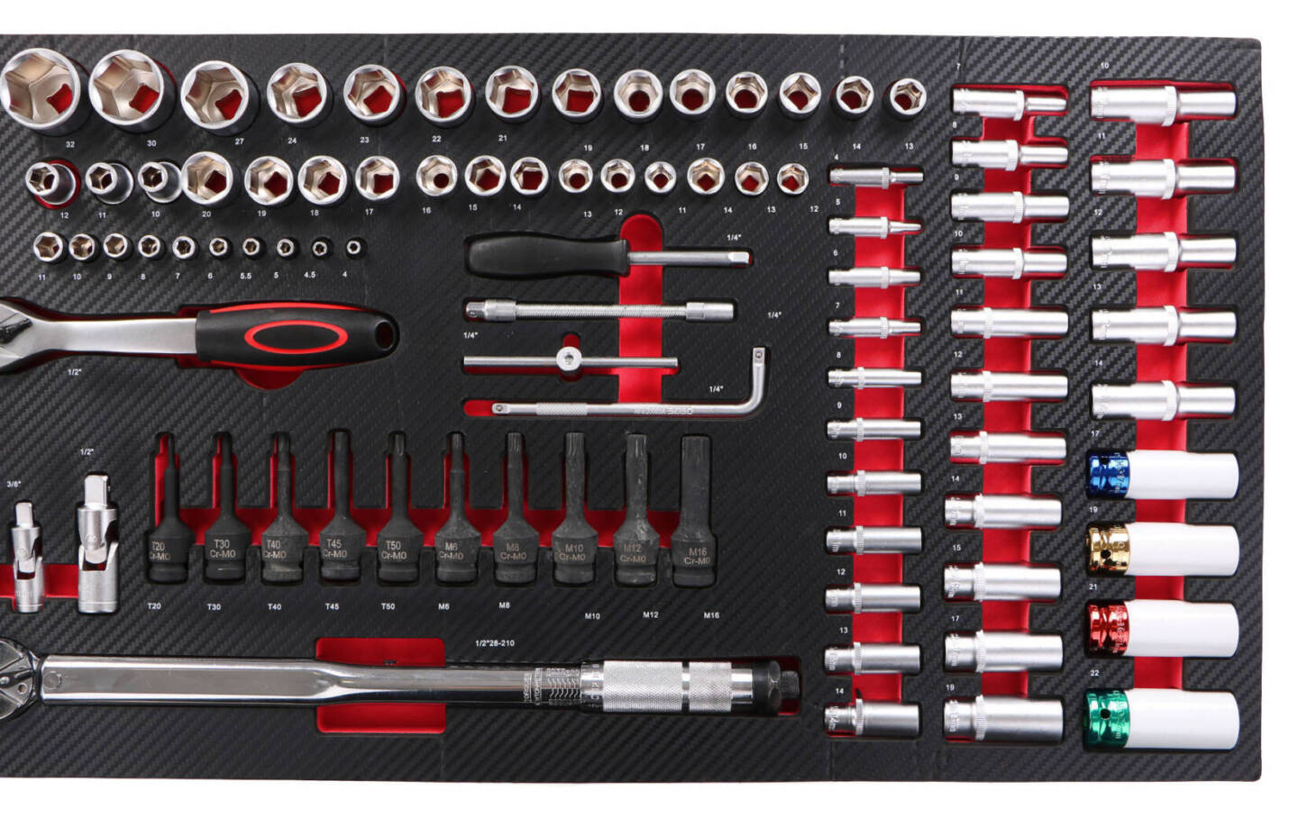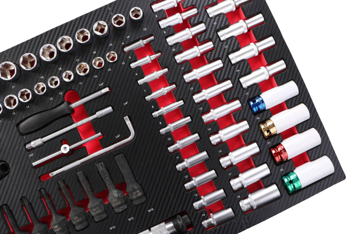 - Obsahuje 1559 ks nářadí v přesných EVA organizérech