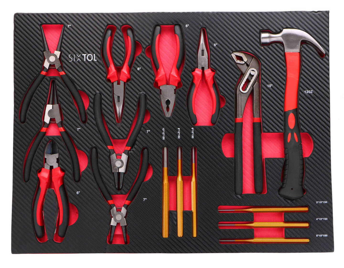 - 2. Šuplík – 16x kleště a další nářadí - 1x Kladivo 340 g