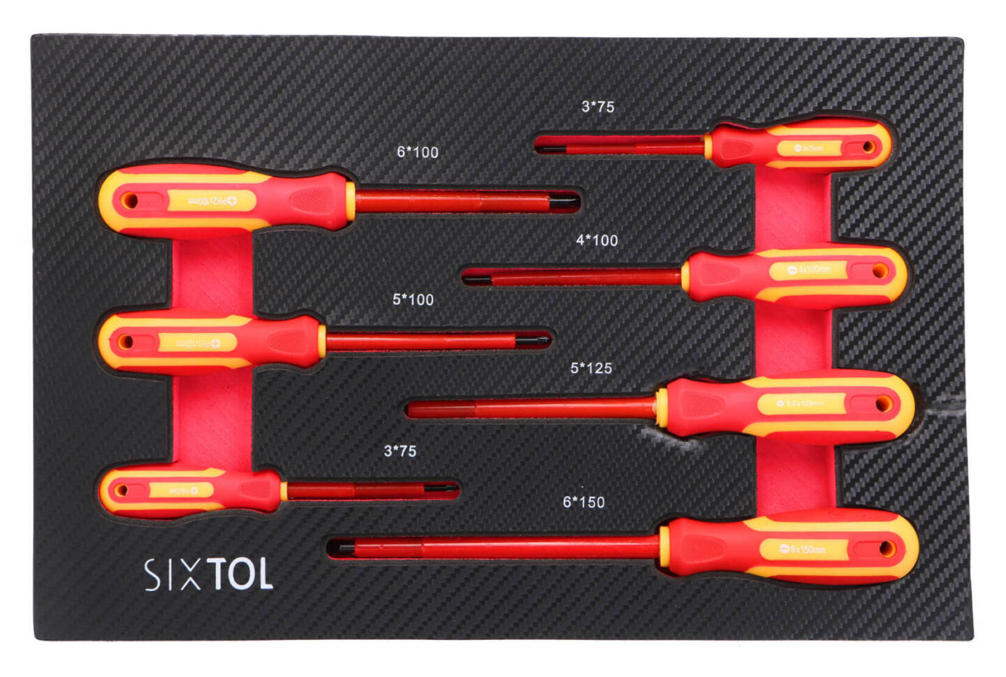 - 8. Šuplík – 7x izolované (elektrikářské) šroubováky - 3x Křížové: 3 × 75 mm; 5 × 100 mm; 6 × 100 mm