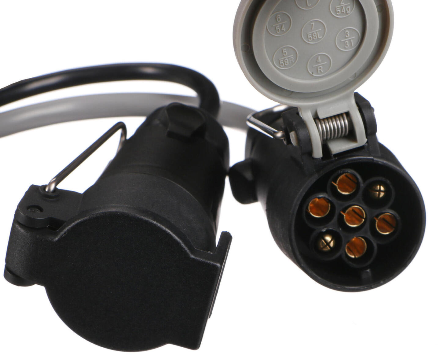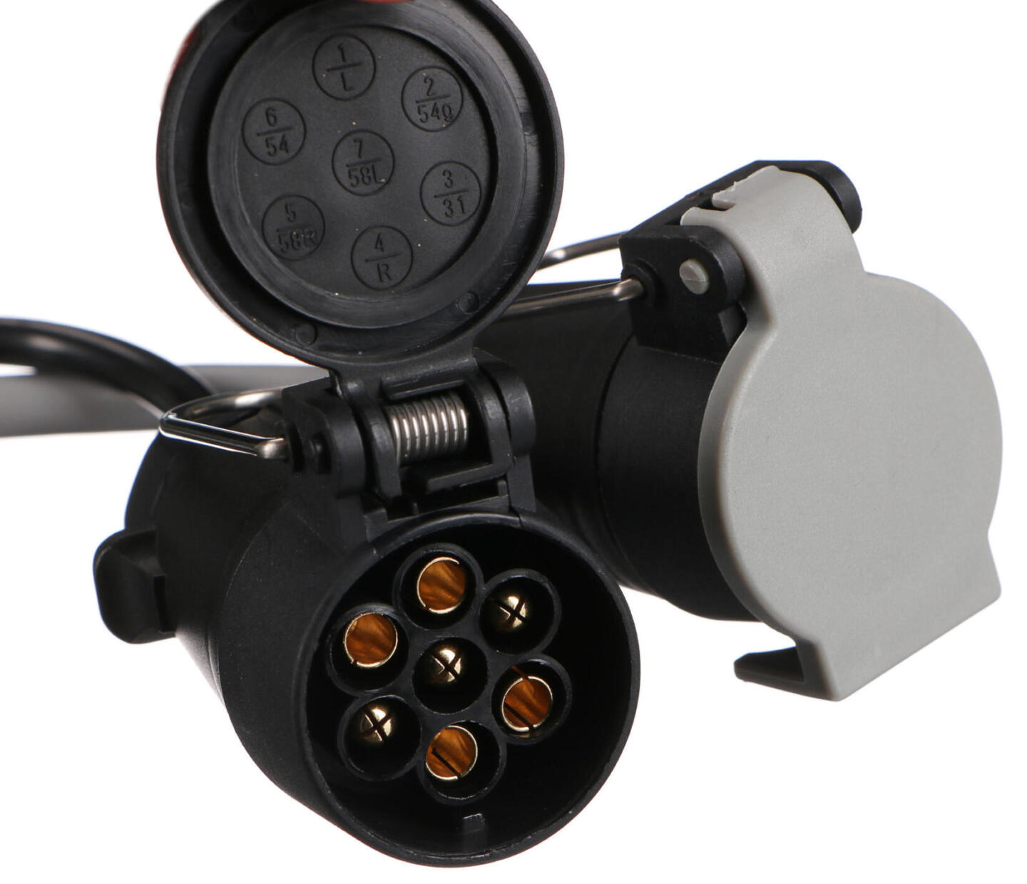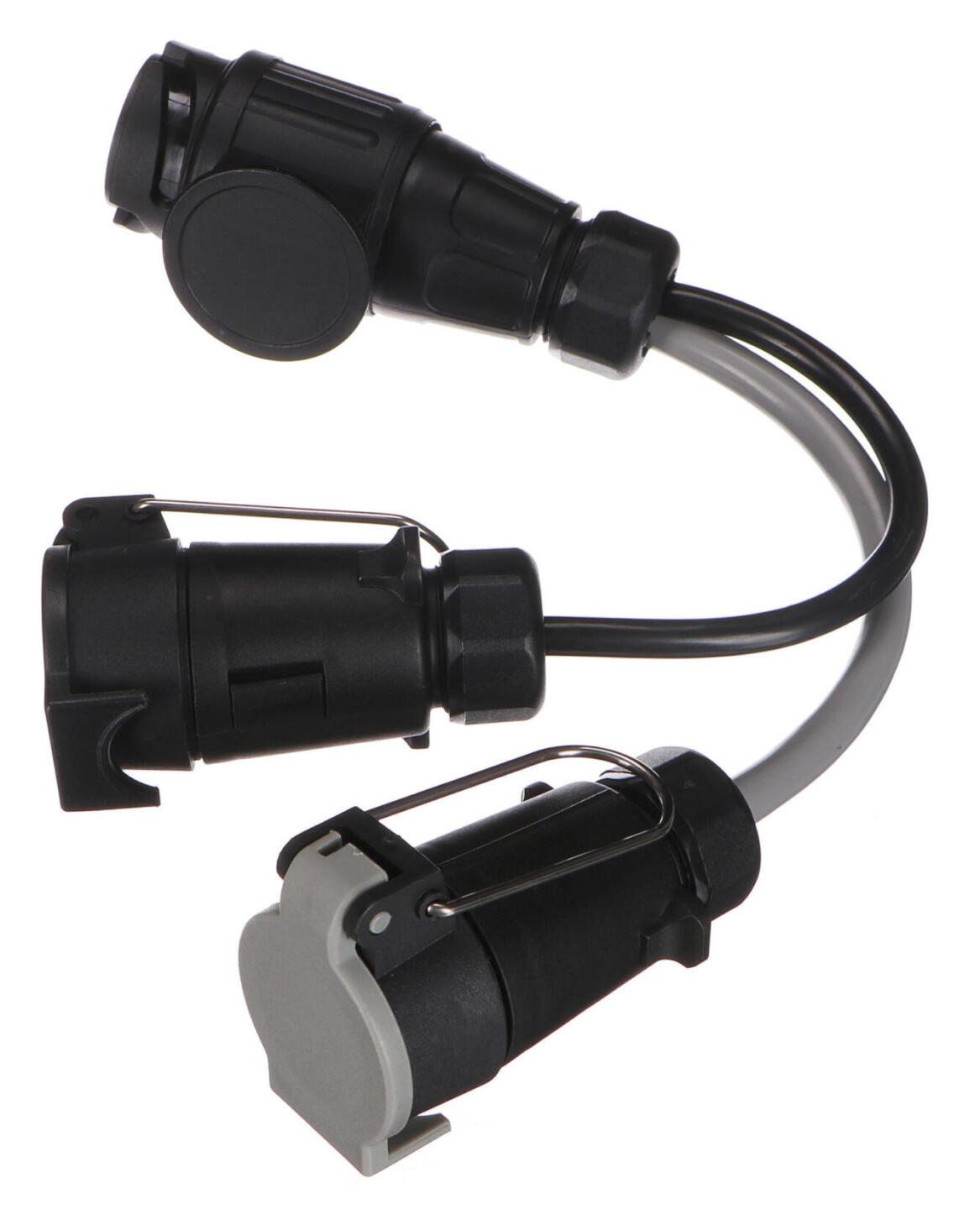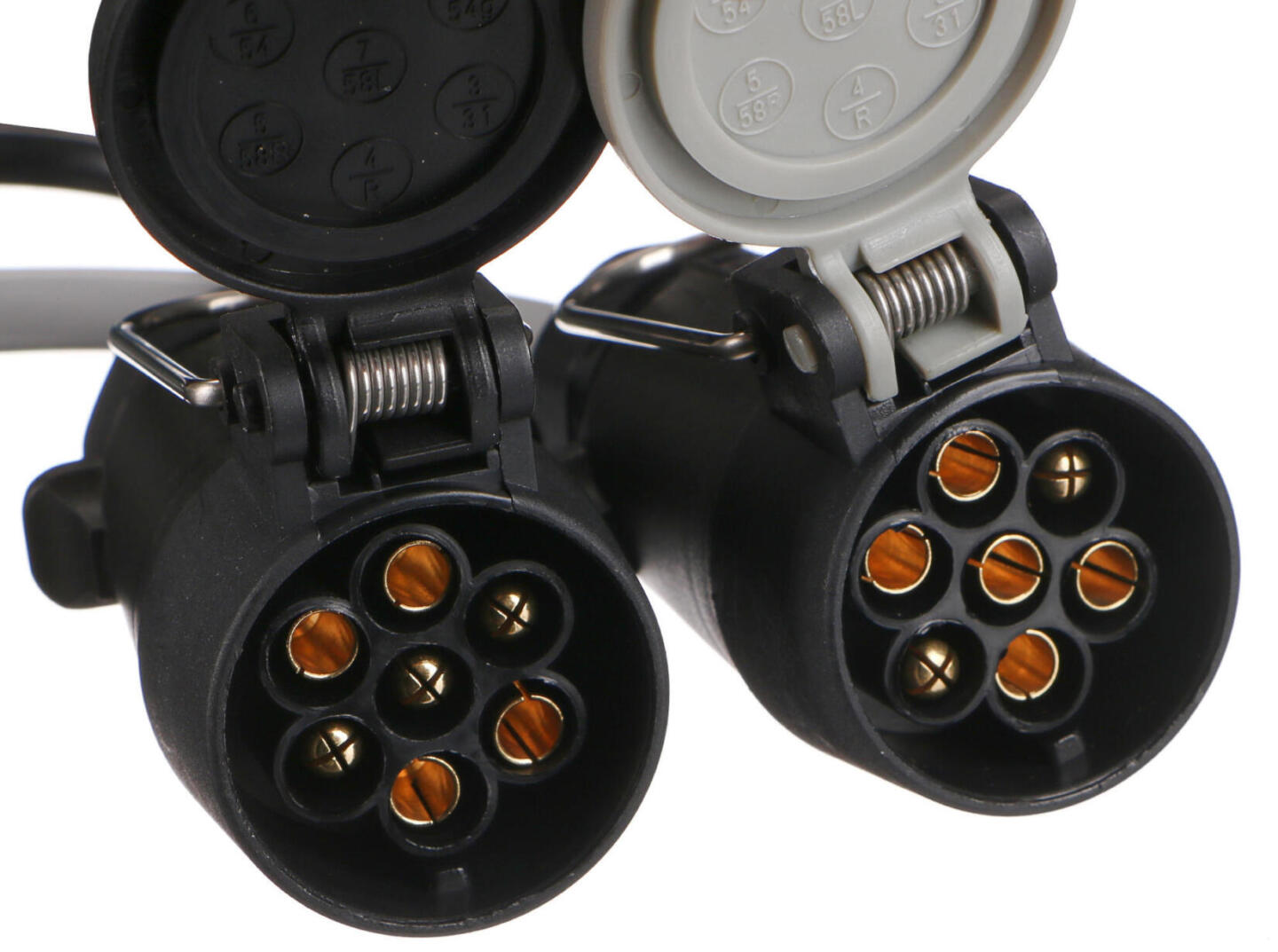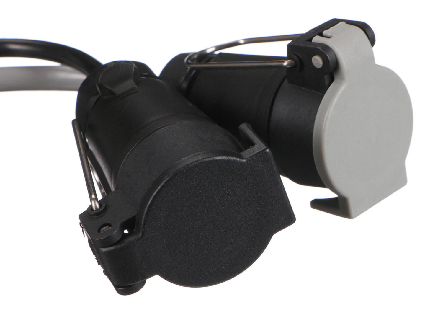 Kabelová redukce TRAILER CABLE 6 převádí 13pinovou zástrčku tažného zařízení na dvě samostatné 7pinové zásuvky typu N a S.