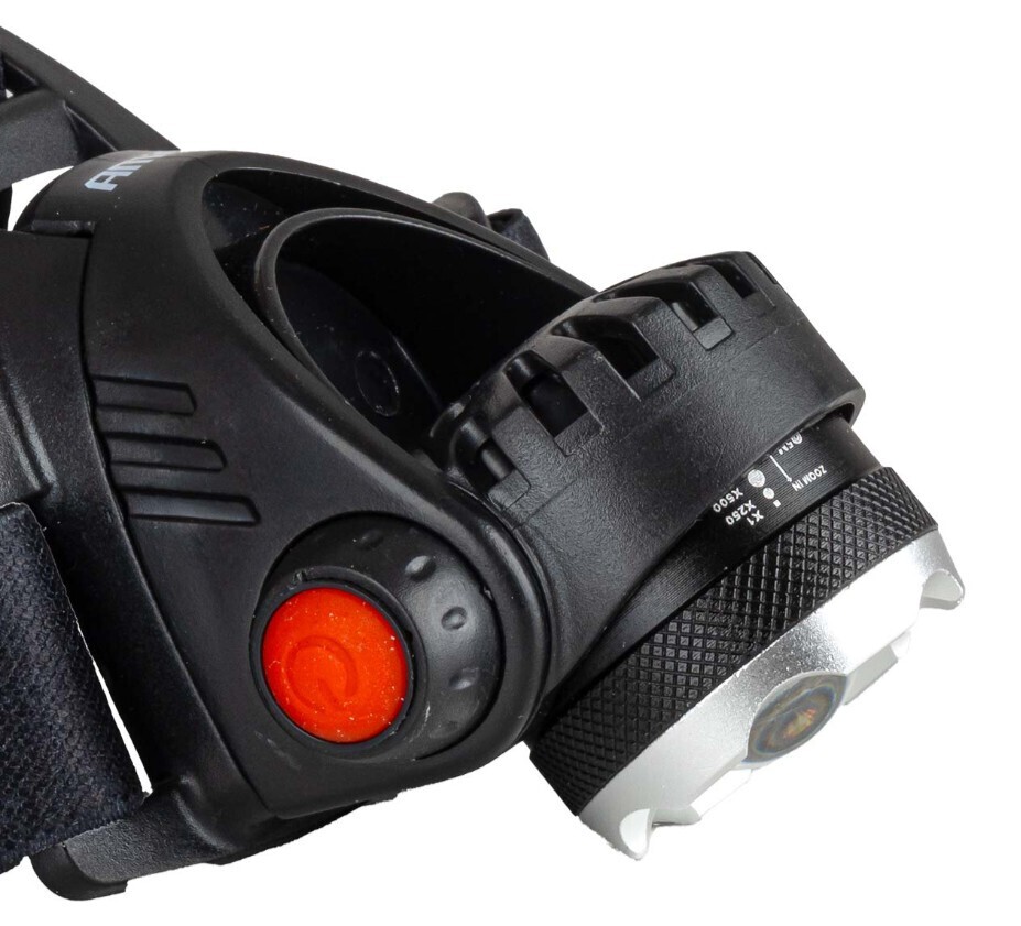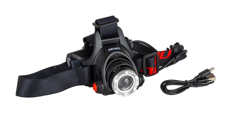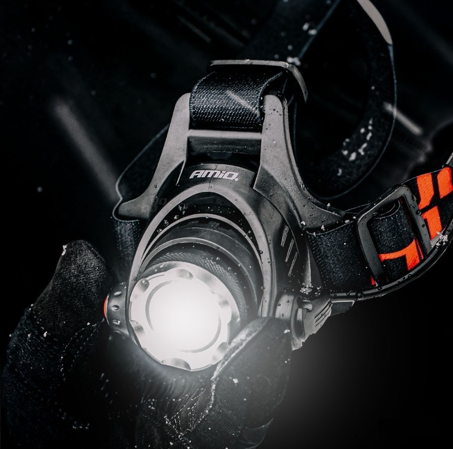 Odolná a funkční čelovka, vyrobená z pevné hliníkové slitiny, vybavena výkonnou LED diodou T6 a funkcí přiblížení umožňující nastavit šířku a dosah paprsku.