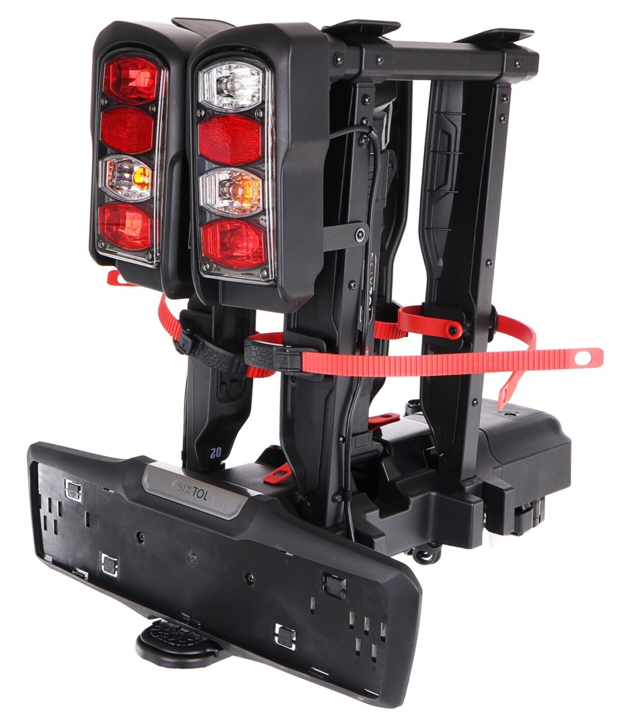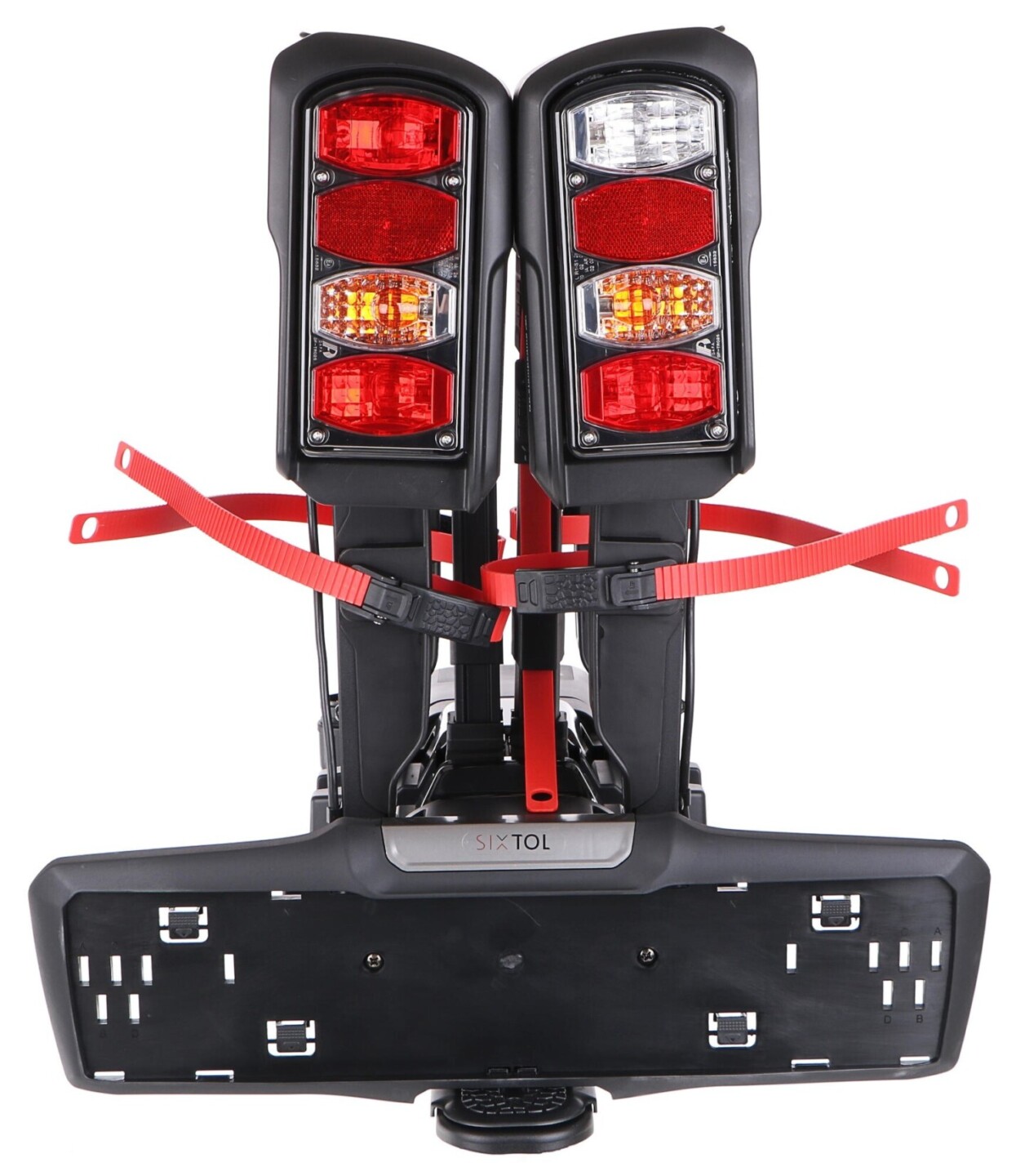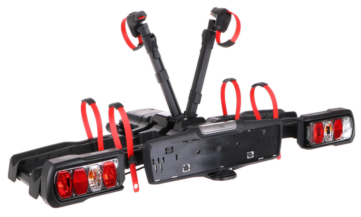 Skládací nosič kol SIXTOL E-BIKE 2 PREMIUM je určen pro bezpečnou přepravu dvou elektrokol na tažném zařízení s celkovou nosností 60kg.