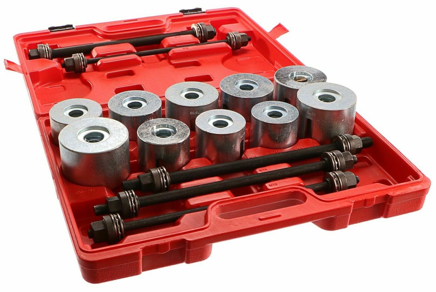 Sada dvaceti sedmi kusů nářadí pro stahování ložisek předního náboje vozidla.